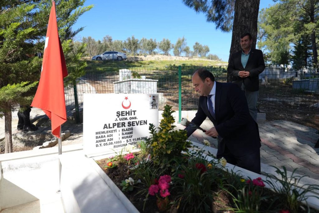 Atatürk Anıtı’nda düzenlenen anma töreninin ardından şehitlik ziyareti gerçekleştirildi. Seydiler Mahalle Mezarlığında bulunan şehitliği ziyaret eden Kaymakam Büyüker, Seydikemer Belediye Başkanı B.Önder Akdenizli, şehit aileleri ve gaziler dualarda bulunup, şehitlerimizin mezarlarına karanfil bıraktı.