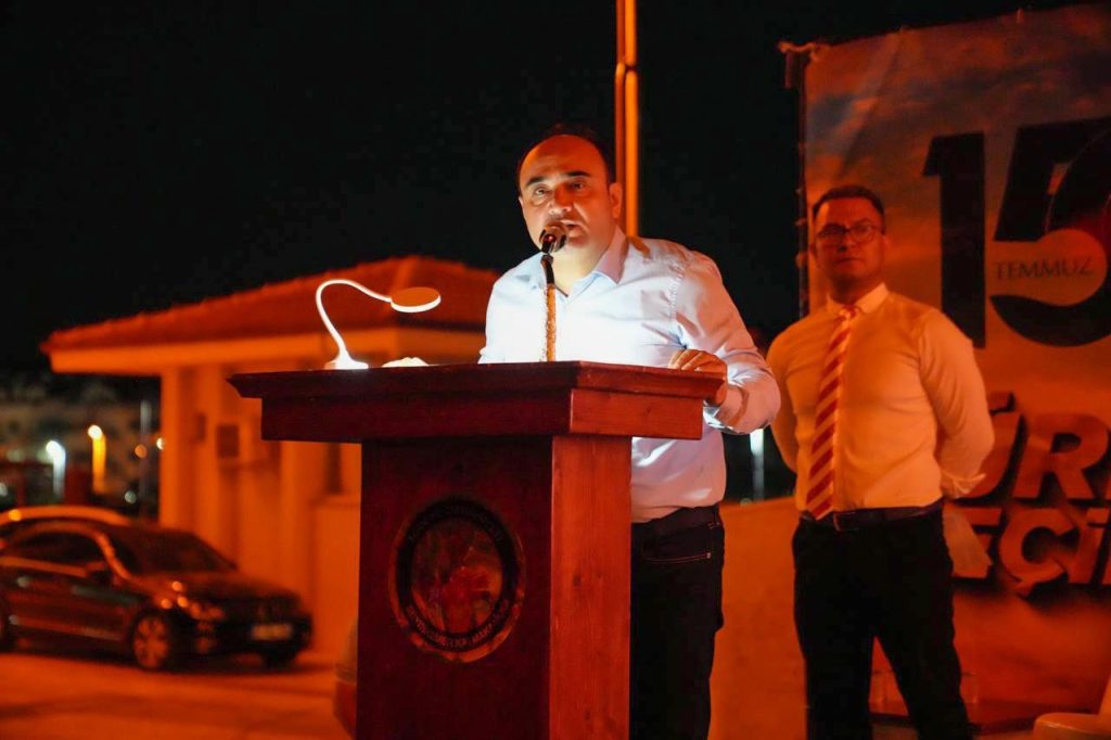 Saygı duruşunda bulunulup İstiklal Marşı’mızın okunmasıyla başlayan program 15 Temmuz Şehitleri ve tüm şehitlerimiz için okunan Kur’an Tilaveti ile devam etti. Daha sonra programda konuşan Seydikemer Belediye Başkanı B. Önder Akdenizli; “Ülkemizin birlik ve beraberlik içinde aştığı 15 Temmuz hain darbe girişimi, milletimizin iradesine karşı yapılmış alçakça bir saldırıydı. Ancak, bu karanlık günde Türk milleti göğsünü siper ederek demokrasisine sahip çıkmış, vatanını korumuş ve hainlere geçit vermemiştir. Şehitlerimizin ve gazilerimizin kahramanlığı sayesinde, Türkiye birlik ve dirliğini korumuş, demokrasiyle ayakta kalmıştır.