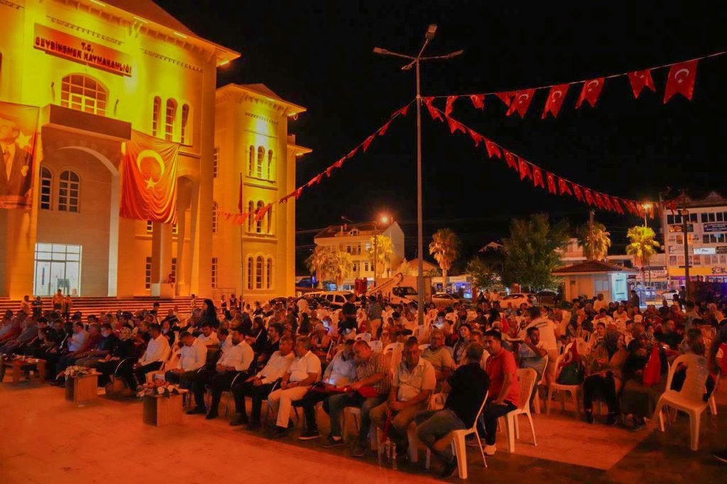 Protokol konuşmalarından sonra Cumhurbaşkanı Recep Tayyip Erdoğan’ın 15 Temmuz Demokrasi ve Milli Birlik Günü dolayısıyla gerçekleştirdiği konuşması izlenip ardından Cumhurbaşkanlığı İletişim Başkanlığınca hazırlanan sinevizyon gösterisi sunuldu. Gecenin ilerleyen saatlerinde ise Seydikemer’in vatan için verdiği 16 şehidinin slayt gösterisi sunuldu. Saatler 00.13’ü gösterdiğinde de tüm Türkiye’de olduğu gibi Seydikemer’in tüm mahallelerindeki camilerde selalar yükseldi.
