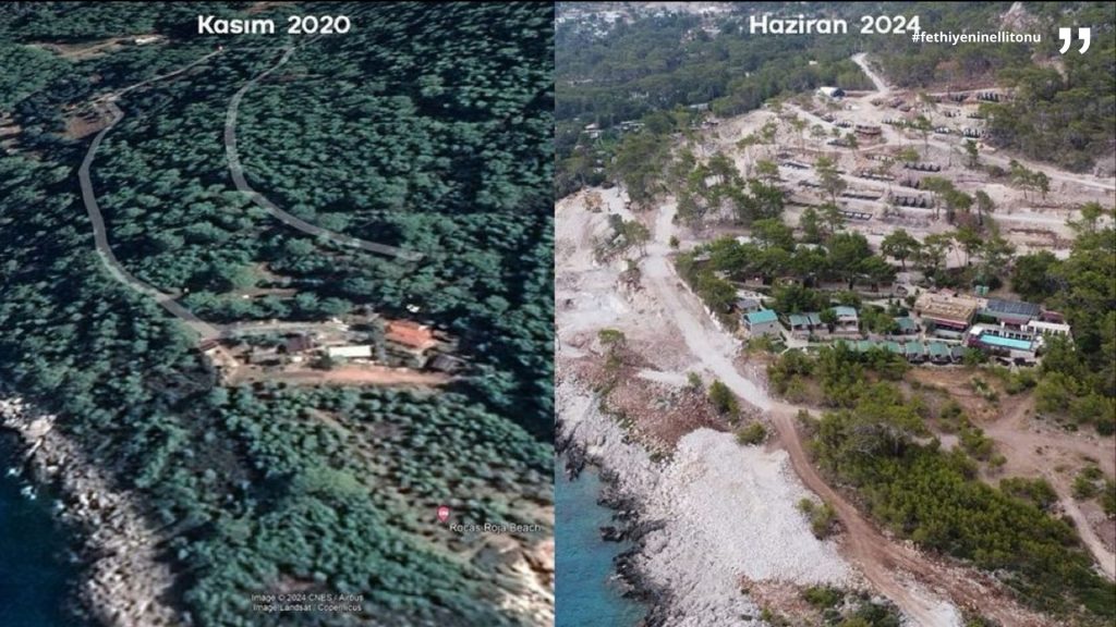 Gazeteci Ağırel sosyal medya hesabından ise Faralya’da bulunan bölgenin 2020 ve 2024 yılı karşılaştırmasını yayınladı. Altında ise şu ifadelere yer verdi.