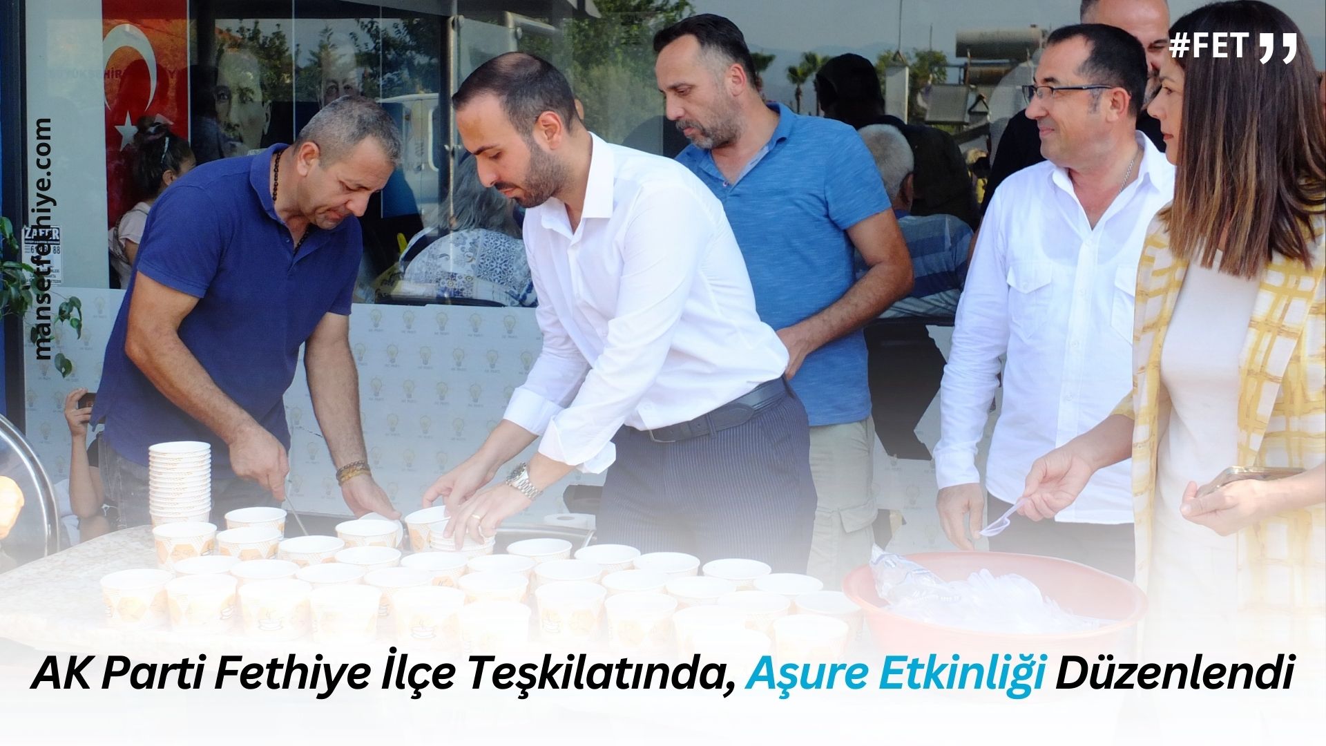 Fethiye AK Parti İlçe Teşkilatı’nda, Muharrem ayı dolayısıyla aşure etkinliği düzenlenerek vatandaşlara aşure ikram edildi. Fethiye AK Parti Fethiye İlçe Başkanlığı binasında düzenlenen etkinliğe: AK Parti Muğla Milletvekili Yakup Otgöz, AK Parti Muğla İl Başkanı Gültekin Akça, AK Parti Fethiye İlçe Başkanı Avukat Murat Çağlar Ayıkol, partililer ve çok sayıda vatandaş katıldı.