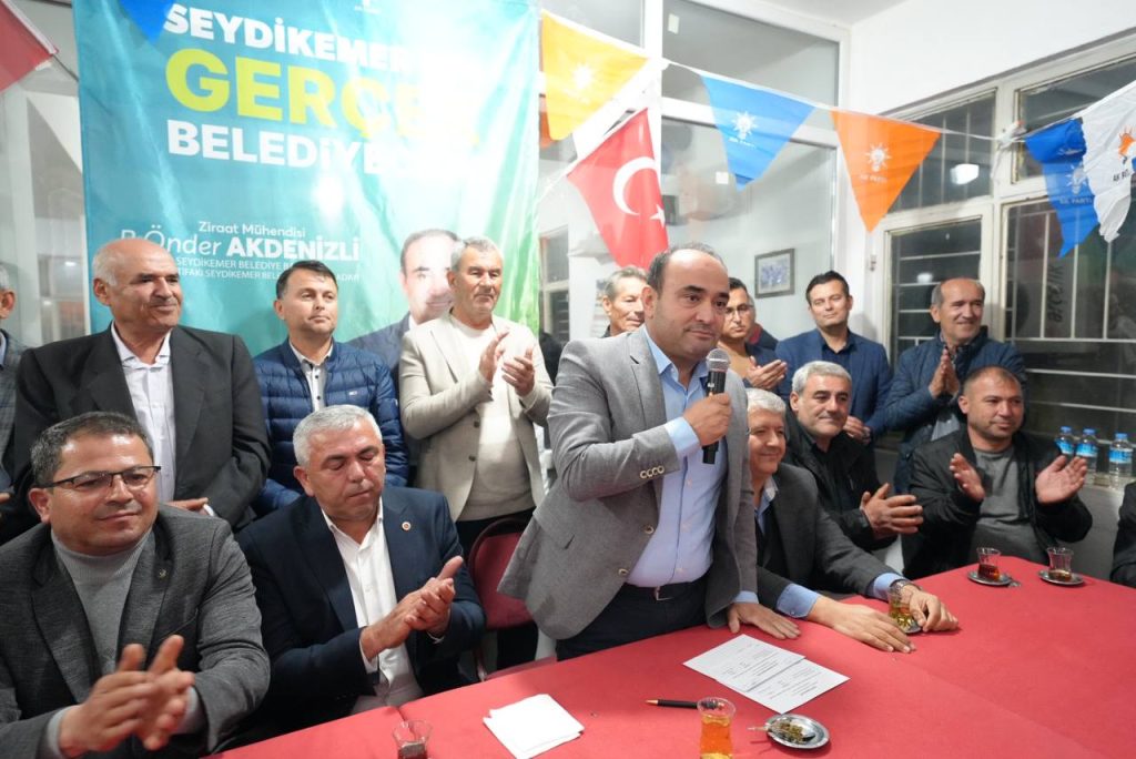 Mahalle sakinlerinin sorularını cevaplandıran, taleplerini ve önerilerini dinleyen Cumhur İttifakı Seydikemer Belediye Başkan Adayı ve Seydikemer Belediye Başkanı B. Önder Akdenizli; “Dont’u, Yayla Gökben’i çok iyi bilen, sizlerin büyük bir çoğunluğunuzu tanıyan, sıkıntıları ve eksiklikleri bilen bir kardeşinizim. 31 Mart Yerel Seçimlerinde tekrar AK Parti’nin, Cumhur İttifakı’nın adayı oldum. Belediye Başkanlığımızın yanı sıra tekrar adayız. Sizlerde arkamızda olduğunuz sürece bizim seçimlerle ilgili bir sıkıntımız yok. Ama bizim oy oranımızı ciddi bir şekilde yükseltmemiz gerekiyor. 25 tane meclis üyesi adayımız var. 25’ini de Meclise katarak bir rekor kırmak istiyoruz” dedi.