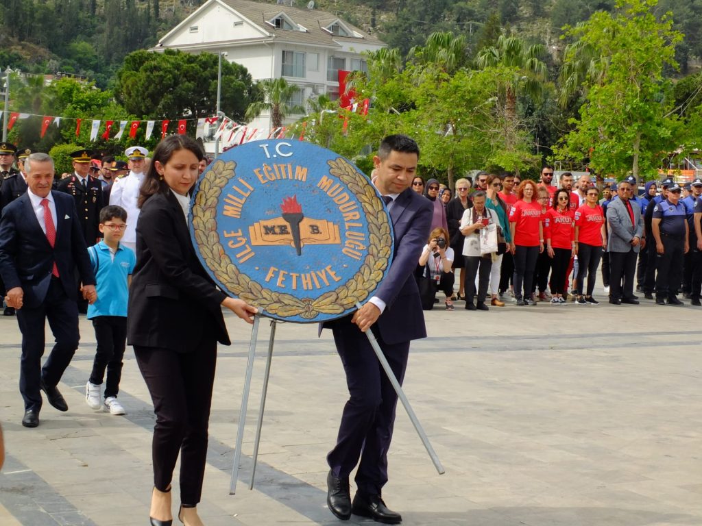 Sabah saat 10.00’da Fethiye Beşkaza Meydanı’nda düzenlenen çelenk sunma töreninde, Fethiye İlçe Milli Eğitim Müdürlüğü Çelengi Atatürk Anıtına, İlçe Milli Eğitim Müdürü Faruk Kaya tarafından sunuldu.