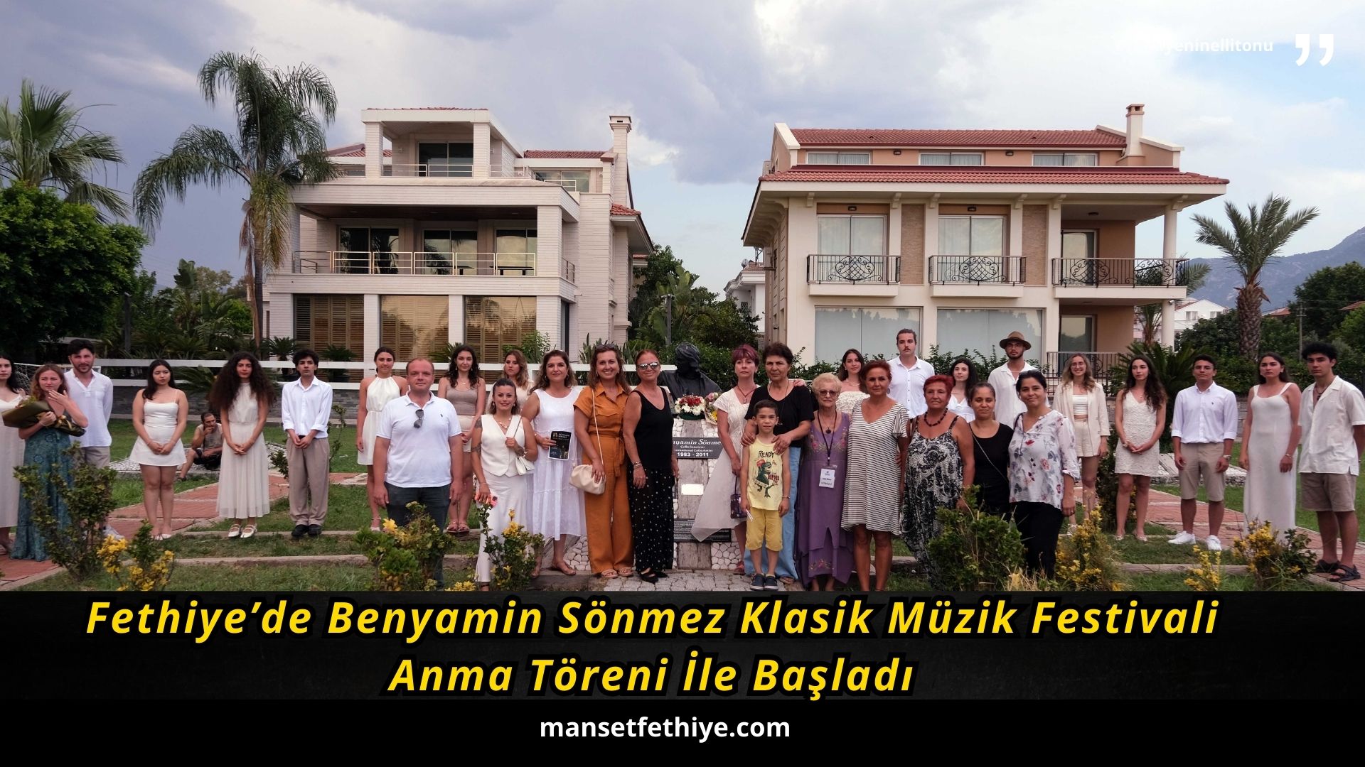 30 Kasım 2011’de geçirdiği kalp krizi sonucu yaşamını yitiren Fethiyeli viyolonsel sanatçısı Benyamin Sönmez’in anısına düzenlenen Fethiye Klasik Müzik Festivali’nin açılışı, ikinci Etap Sahil Bandı’nda bulunan Benyamin Sönmez parkında gerçekleştirildi. Düzenlenen açılış ve anma töreninde Benyamin Sönmez büstüne çiçek sunumu yapılarak, koro tarafından Sönmez anısına şarkılar seslendirildi.