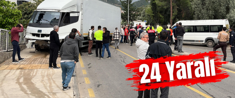 Fethiye’de okul servisi ile kamyon çarpıştı. Kazada 23 öğrenci ve 1 öğretmen yaralanırken, her iki sürücünün de yara almadığı öğrenildi.