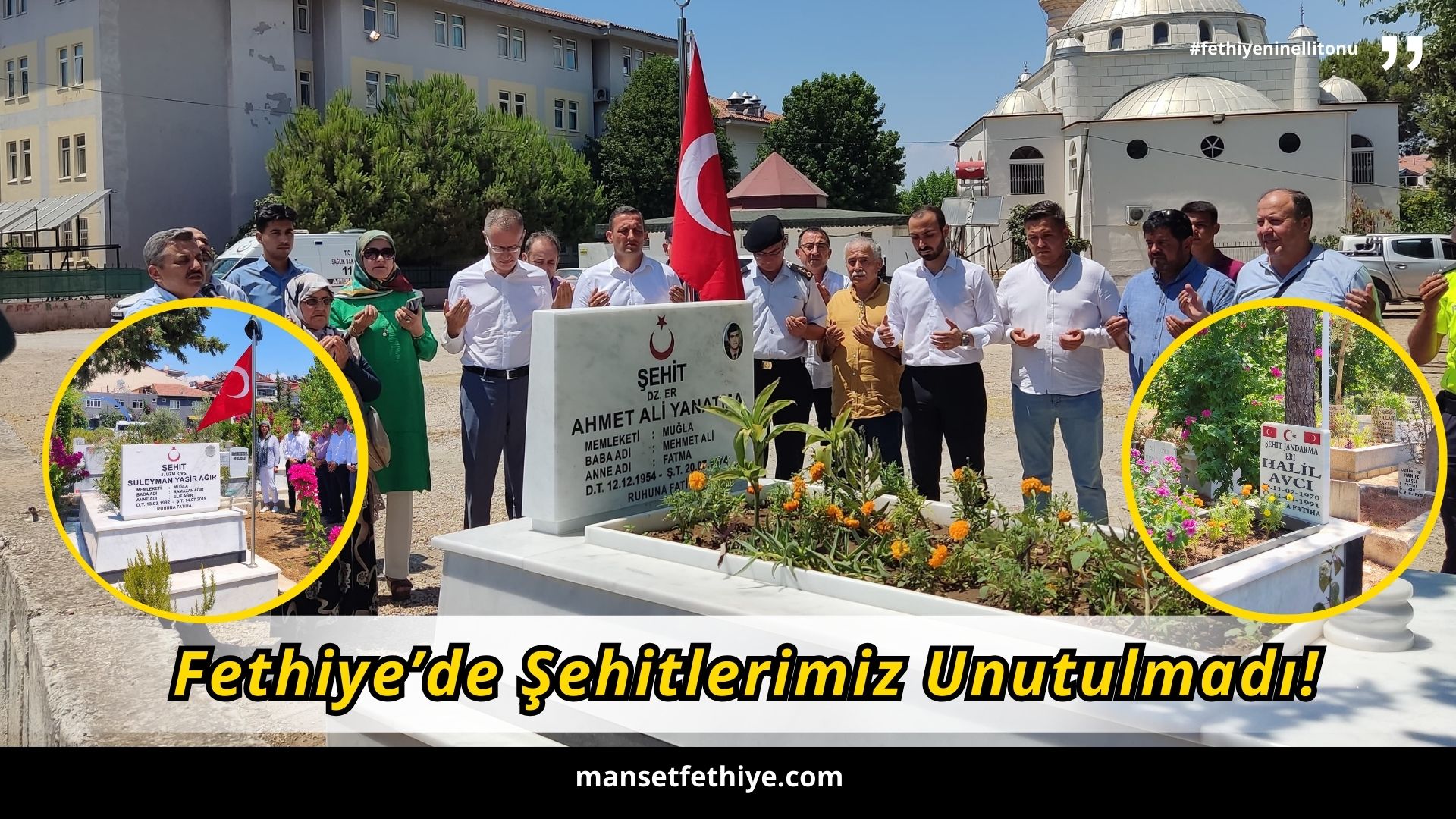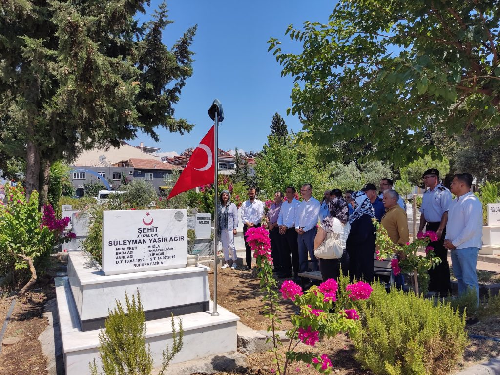 Ziyarette heyet tarafından şehitlerimizi hayır duası okunurken Kaymakam Ertaş’a Fethiye İlçe Emniyet Müdürü Kayhan Dadaşoğlu, İlçe Jandarma Komutanı Yarbay Mustafa Çiçek, Fethiye Cumhuriyet Başsavcısı Günşafak Karartı, Fethiye İlçe Müftüsü Kamil Oktay eşlik etti.