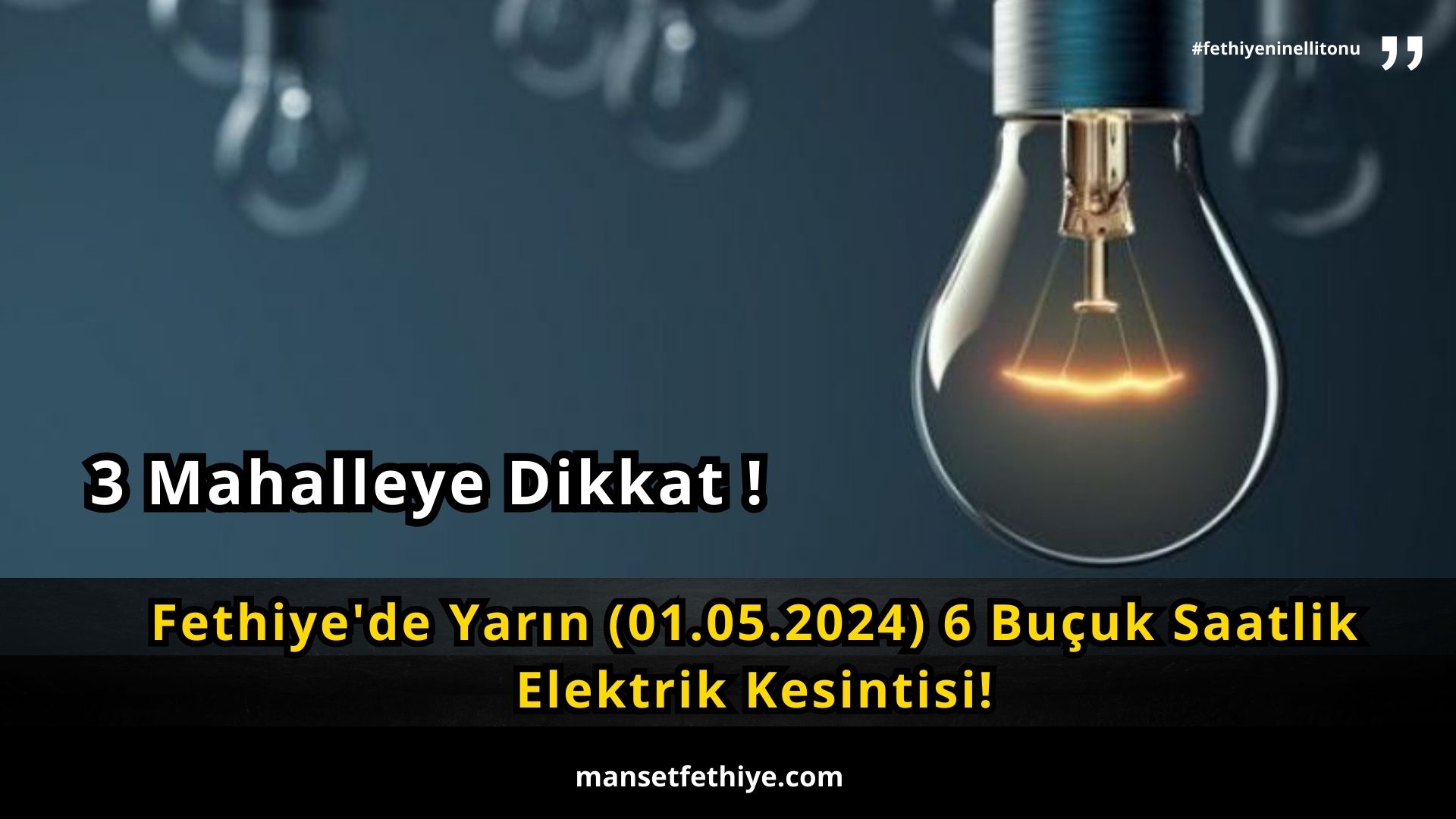 Fethiye’de Yarın (01.05.2024) 6 Buçuk Saatlik Elektrik Kesintisi!