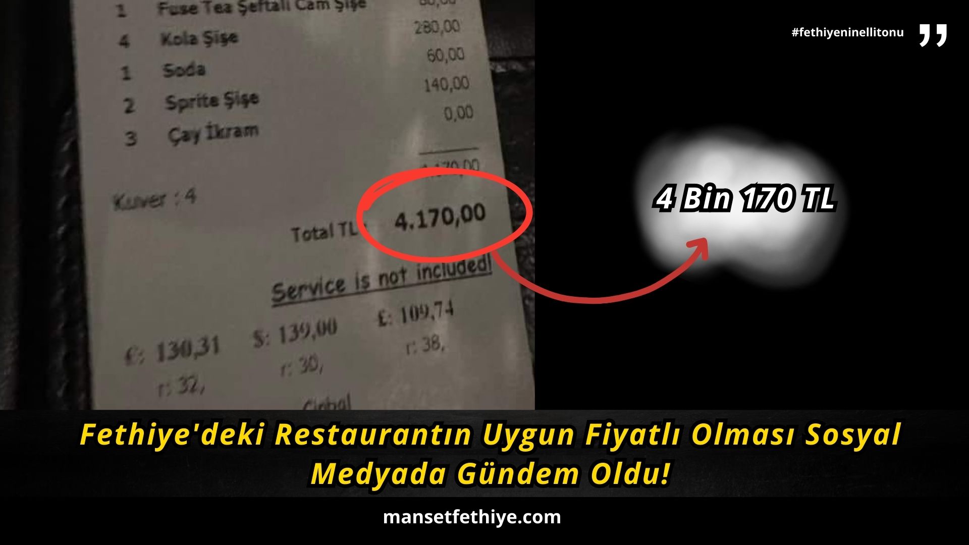 Son günlerde uçuk fiyatlı restaurantların aksine Fethiye Kayaköy’de bulunan bir restaurant uygun fiyatlı olması ile sosyal medyada gündem oldu. Adisyonda bulunan 19 çeşit ürün için 4 Bin 170 TL fiyat çıktı. Onedio.com adisyonu habere taşıdı. Haberin altına binlerce yorum geldi ve sosyal medya kullanıcıları hesabı uygun bularak işletme sahibini tebrik ettiler.