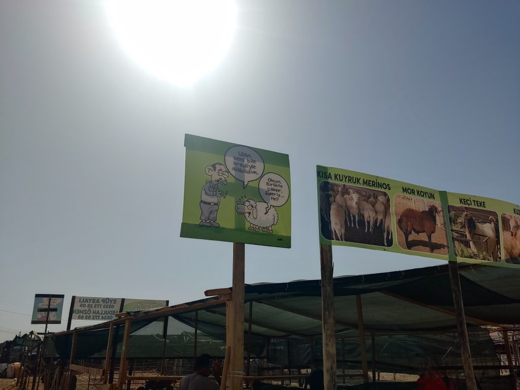 Babasıyla birlikte pazarda duran ve kurbanlıklar konusunda oldukça bilgili olan Efe Tarık’ın satış alanında babası için hazırlattığı afiş, görenlerin ilgisini çekti.