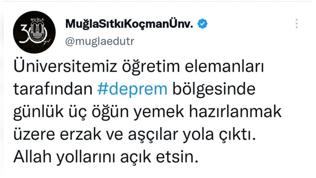 Muğla Sıtkı Koçman Üniversitesi öğretim elemanları tarafından deprem bölgesinde 3 öğün yemek hazırlanacak.
