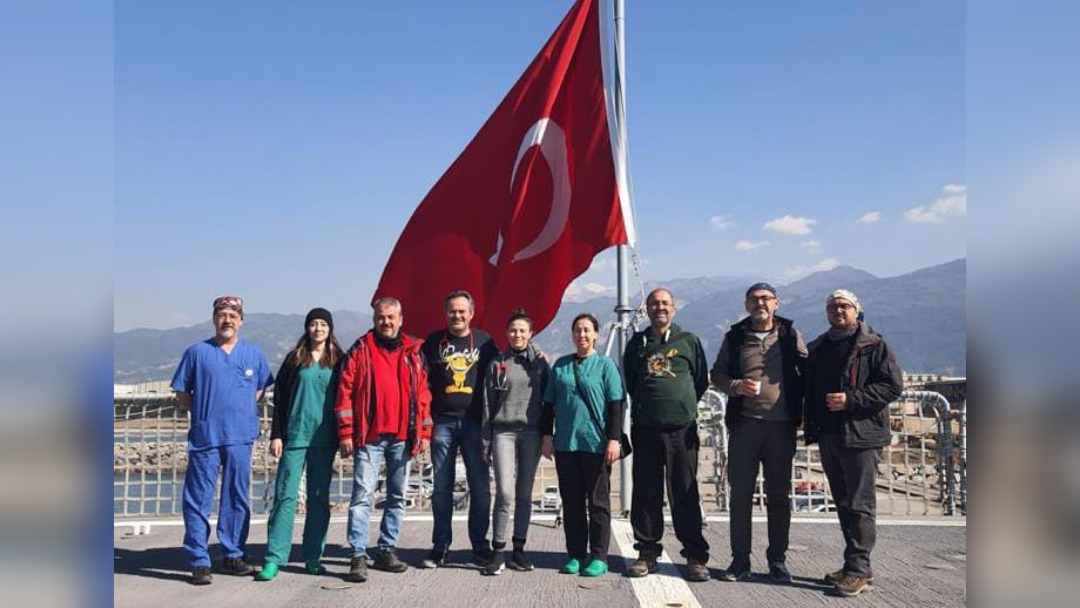 TCG Bayraktar Gemisinin Başhekimi MSKÜ Tıp Fakültesi Acil Tıp Anabilim Dalı Başkanı Prof. Dr. Ethem Acar son durumu şu şekilde özetledi: “7 Şubat 2023 tarihide TCG Bayraktar Gemisi ile Marmaris’ten Hatay’a doğru yola çıktık. Yirmi dört saat süren bir yolculuktan sonra konaklayacağımız limana geldik. Bulunduğumuz bölgede depremden etkilenmiş çok sayıda insan var. Buraya geldiğimiz ilk andan itibaren insanların sağlık ihtiyacı vardı. Evlerinde kalamıyorlardı, çoğu dışarıda kalıyordu. Bu bakımdan biz hem tıbbi tedavilerini gerçekleştirdik hem de başka ihtiyaçlarını da gidermeye çalıştık. Onlara Devlet’in şefkatli ellerini uzatmaya çalıştık. Hep birlikte özveriyle çalışmaya devam ediyoruz. Yorgun olmakla birlikte huzurluyuz, vazifemizi yaptığımızı düşünüyoruz.”