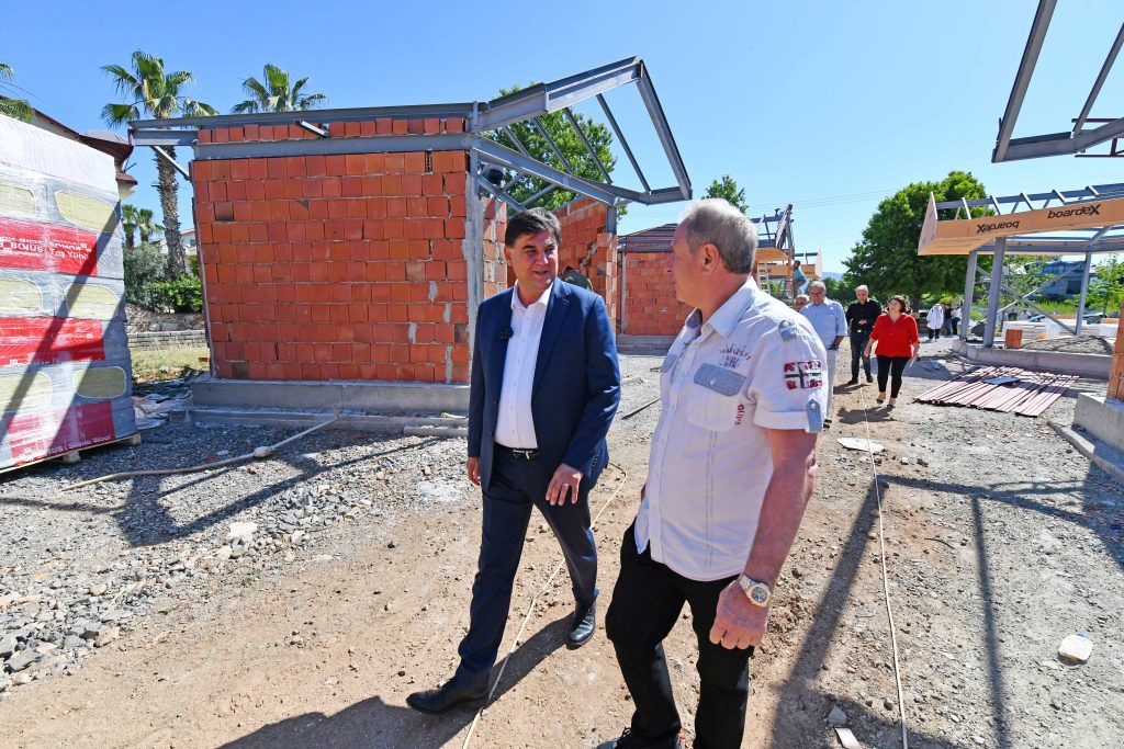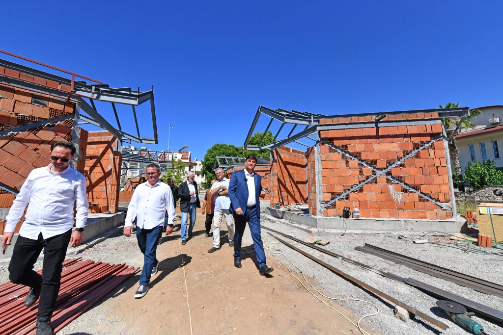 Hayırsever iş insanı Niyazi Mete ve Fethiye Belediye Başkanı Alim Karaca, sabah erken saatlerde Akarca Mahallesi’ndeki inşaat alanında incelemelerde bulundular.
