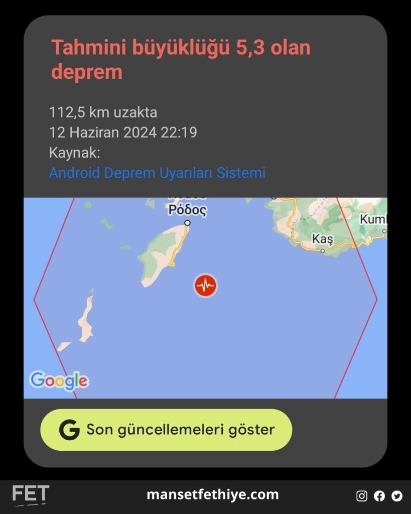 Depremin etkisi özellikle Fethiye’de hissedildi ve birçok vatandaş cep telefonlarına gelen bildirimlerle haberdar oldu. Bildirimlerde depremin 5.3 şiddetinde olduğuna dair bilgiler yer aldı, bu da kentteki endişe ve korkuyu artırdı.