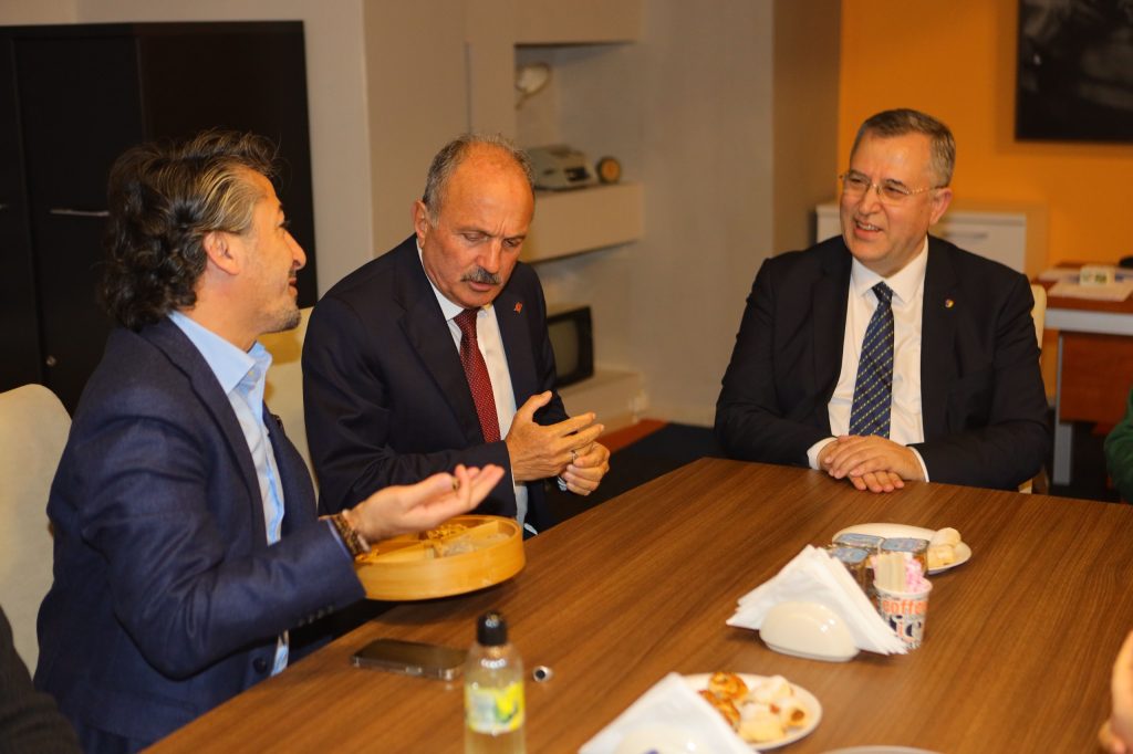 Saatcı, misafirlerini seçim ofisi kapısında karşılarken, onlarla tek tek tokalaştı. Gecikmiş bir ziyareti gerçekleştirdiklerini söyleyen FTSO Başkanı Osman Çıralı, Saatcı’ya çalışmalarında başarılar diledi. Yönetim kurulu ile alınan karar gereği adayların seçim ofis açılışlarına katılmadıklarını anlatan Çıralı, “Behçet Bey’in seçim ofisi açılışına gelemedik. Hayırlı olsun diyelim dedik. Yönetim kurulumuzla beraber geldik. Kendisine çıkmış olduğu yarışta başarılar diliyoruz” dedi.