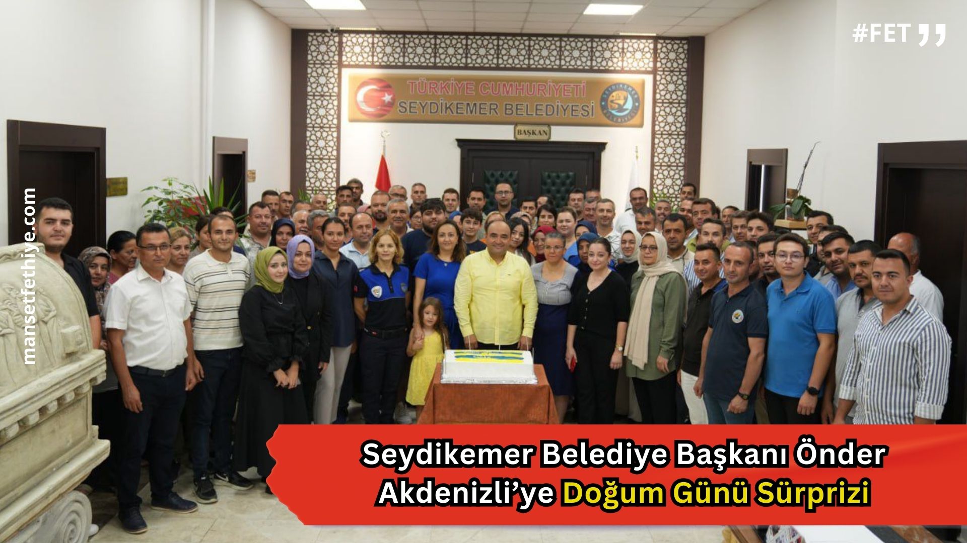 Seydikemer Belediyesi Hizmet Binasında düzenlenen kutlamaya Seydikemer Belediye Başkanı Önder Akdenizli’nin eşi Sema Akdenizli, oğulları Kağan ve Çağan Akdenizli, kızı Eda Akdenizli, Belediye Başkan Yardımcıları Mustafa Karakuş, Mustafa Tanır ve Muharrem Gökcen’in yanı sıra birim müdürleri ve belediye personeli katıldı.