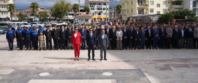 Tören, Kaymakam Mustafa Dilekli’nin Atatürk Anıtına çelenk sunmasıyla başladı. Ardından Belediye Başkanı Önder Akdenizli anıta çelenk bıraktı ve Cumhuriyetin önemini vurguladı. Program saygı duruşu ve İstiklâl Marşı’nın okunmasıyla sürdü. Daha sonra bayrağımızı göndere çekmekle tören tamamlandı.