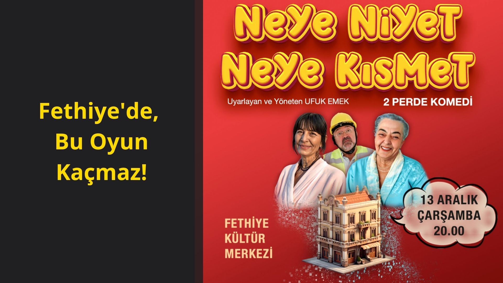 “Neye Niyet Neye Kısmet” 13 Aralık Çarşamba günü Fethiye Belediyesi Özer Olgun Kültür Merkezi’nde sahne alacak. Devamını Oku
