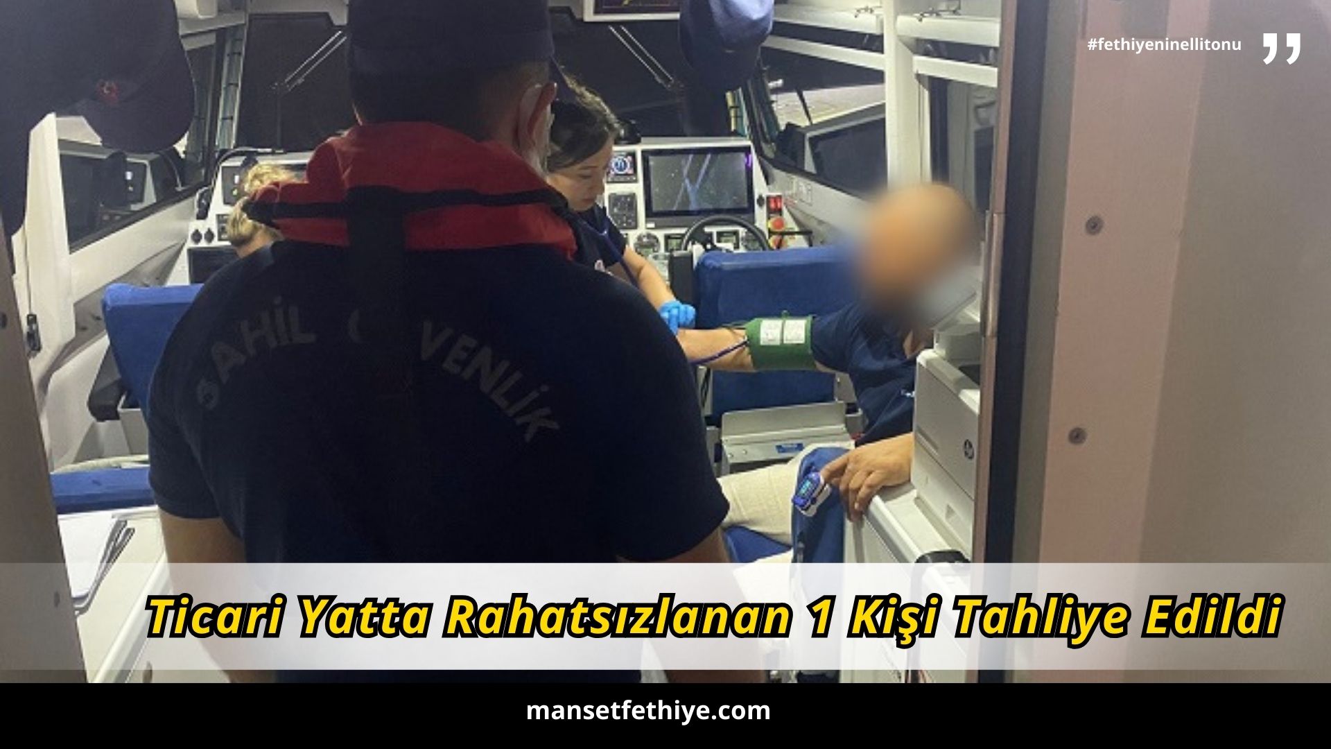 14 Temmuz 2024 tarihinde saat 22.40’ta, ihbar üzerine Sahil Güvenlik Komutanlığı ekipleri harekete geçti. Ticari yatta rahatsızlanan kişinin tıbbi tahliyesi güvenli bir şekilde gerçekleştirildi.