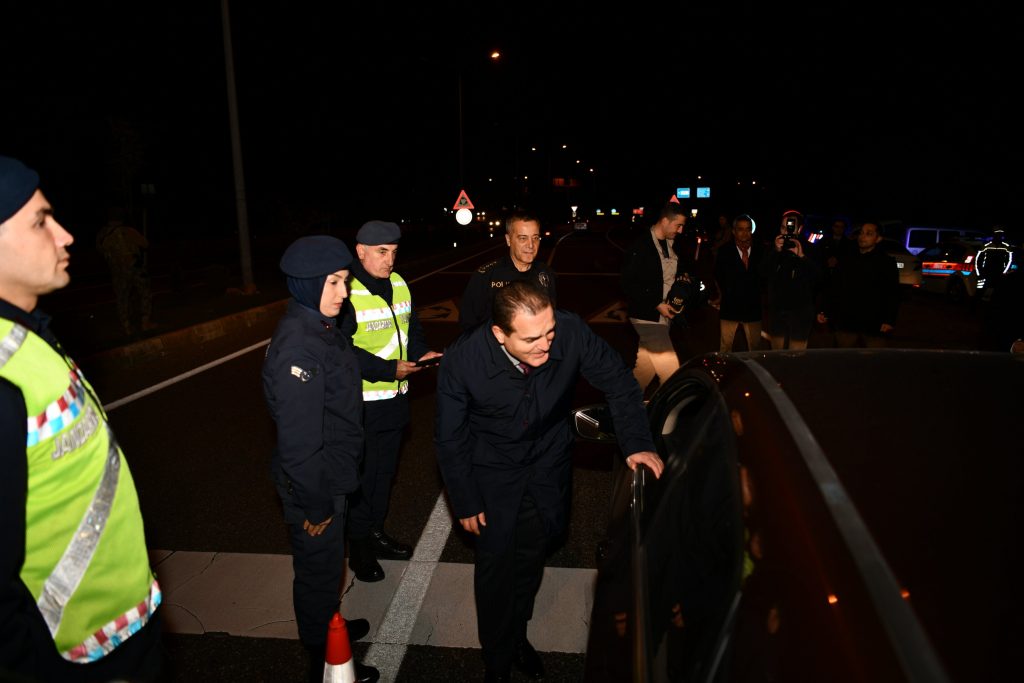 Daha sonra Vali İdris Akbıyık mesai mevhumu gözetmeden kamu düzeninin temini, kişilerin can ve mal güvenliğinin tesisi için görev yapan kahraman polis ve jandarmamızı şehir girişlerindeki yol kontrol noktalarında ziyaret etti. Polis, Jandarma ve yol uygulaması esnasında durdurulan sürücülerin yeni yıllarını kutladı. Personele görevlerinde başarılar diledi.