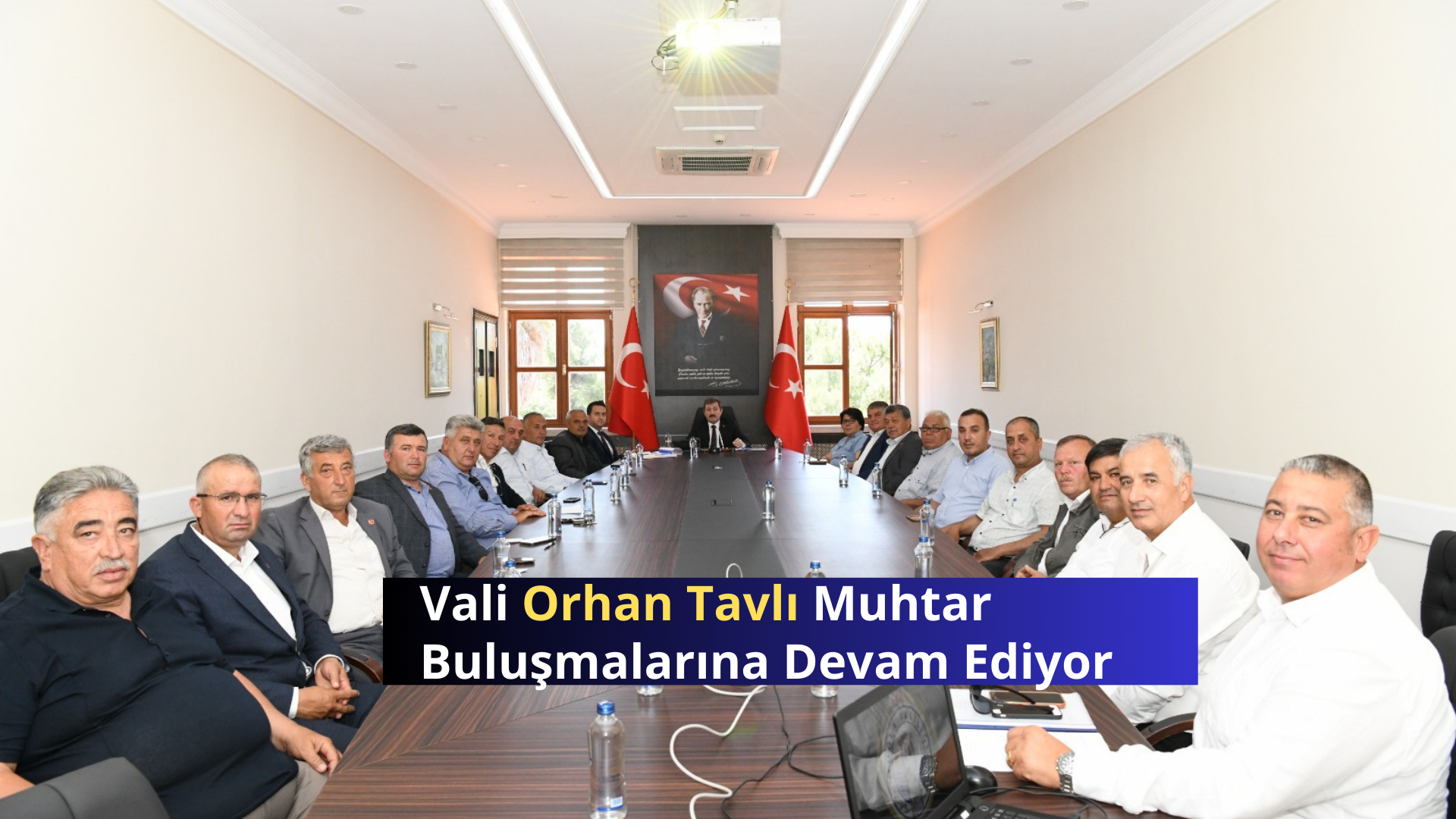 Muğla Valiliği 75. Yıl toplantı salonundaki toplantıya Muğla Valisi Orhan Tavlı’nın yanı sıra İdare ve Denetim Müdürü Umut Gülmüş, Bodrum Dirmil Muhtarı İbrahim Bayır, Türkbükü Muhtarı Yücel Ertuğrul, Yalıkavak Muhtarı Ali Çınar, Köyceğiz Çandır Muhtarı Salih Yukarlı, Ekincik Muhtarı Doğan İnce, Toparlar Muhtarı Hüsamettin Çelik, Menteşe Çırpı Muhtarı Mehmet Şanlı, Gazeller Muhtarı Yücel Çiçek, Gülağzı Muhtarı, Çiftlik Muhtarı Recep Nuri Öztürk, Yaraş Muhtarı Hasan Aydoğdu, Yenibağyaka Muhtarı Günay Sarıoğlu, Seydikemer Arsa Muhtarı Cüneyt Uçar, Bekçiler Muhtarı Bayram Uysal, Boğaziçi Muhtarı Yusuf Yüreğil, Doğanlar Muhtarı Mesut Duman, Ula Karabörtlen Muhtarı Gürkan Bozoğlu, Kızılağaç Muhtarı Güler Keleş, Yaylasöğüt Muhtarı Sedat Akyol katıldı.